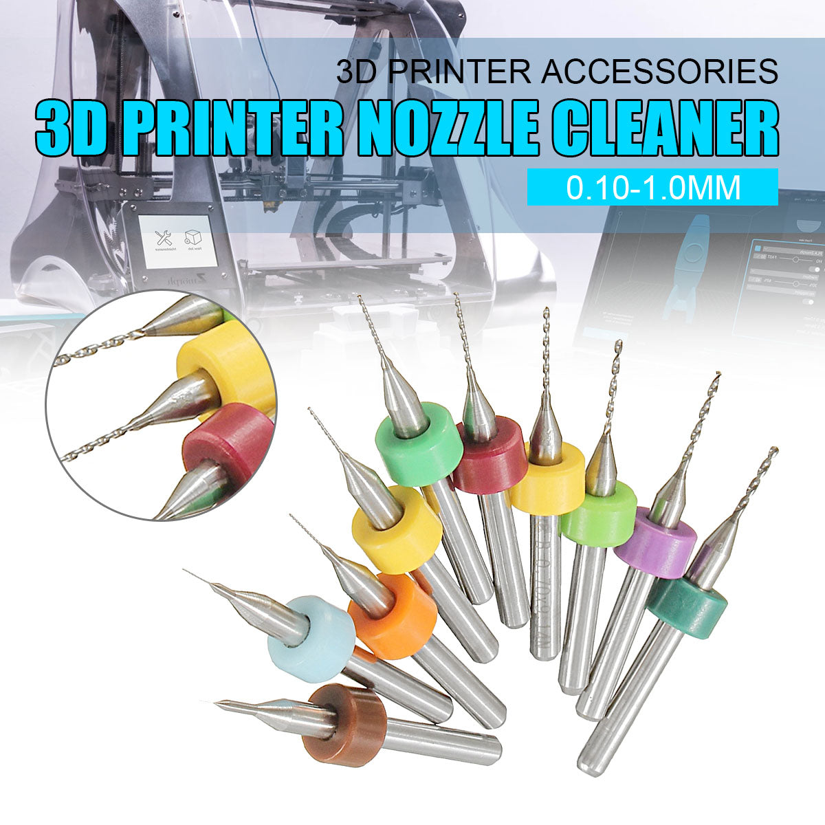 GEEETECH 10pcs/Set 0.1-1.0mm Solid Carbide PCB Drill Bit Nozzle Cleaning Cleaner for Extruder RepRap 3D Printer Accessories Part